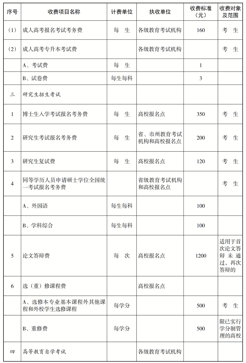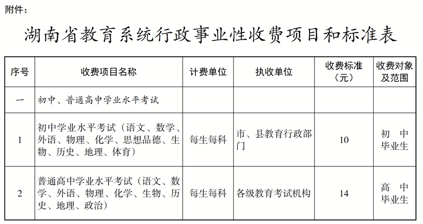 附件:湖南省教育系统行政事业性收费项目和标准表