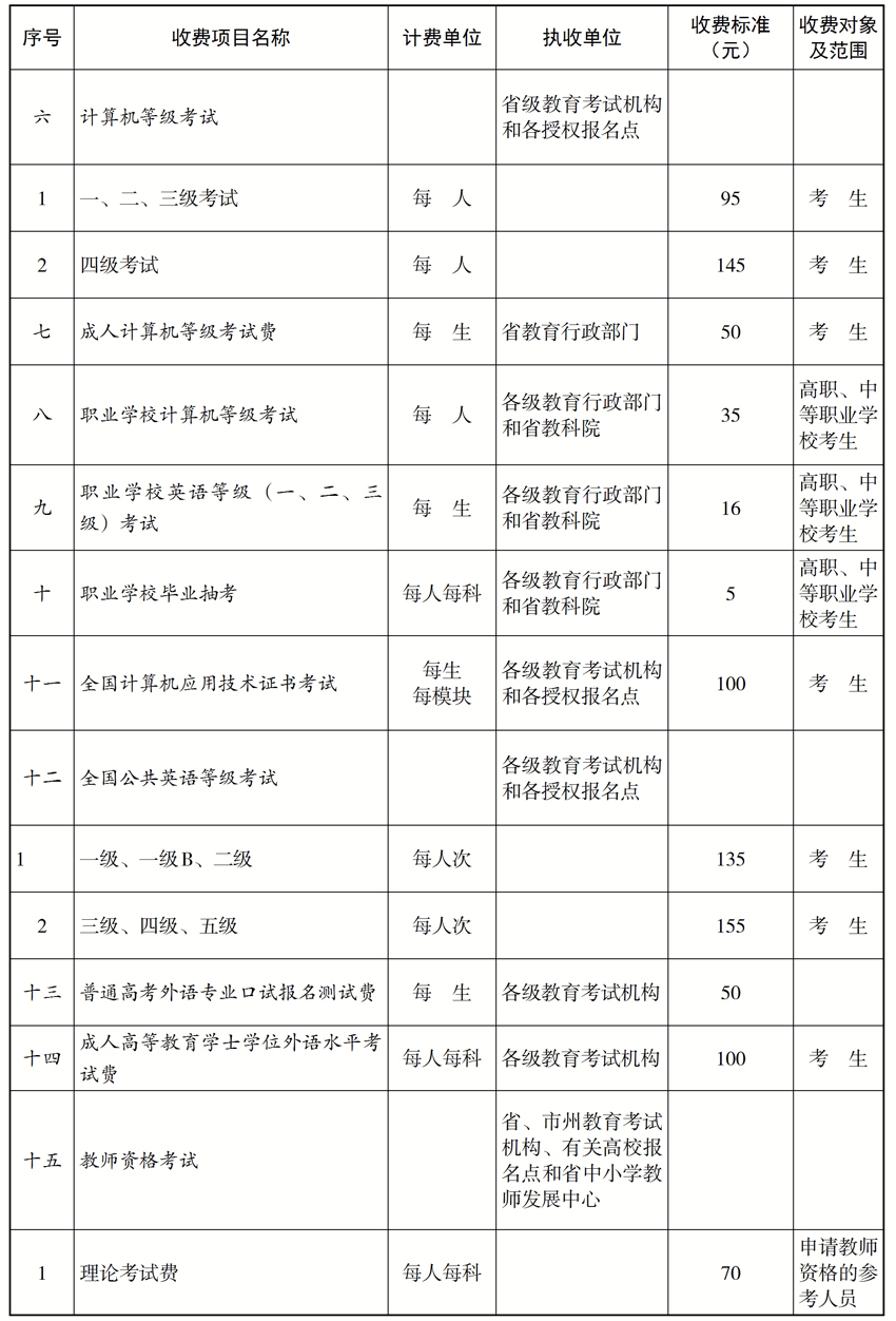 一、全省教育系统行政事业性收费一律按本次公布的项目和标准执行(详见附表)。