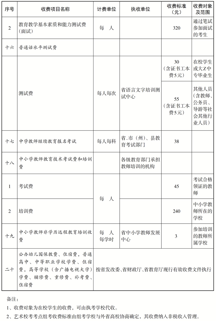 关于发布全省教育系统行政事业性收费项目和标准的通知
