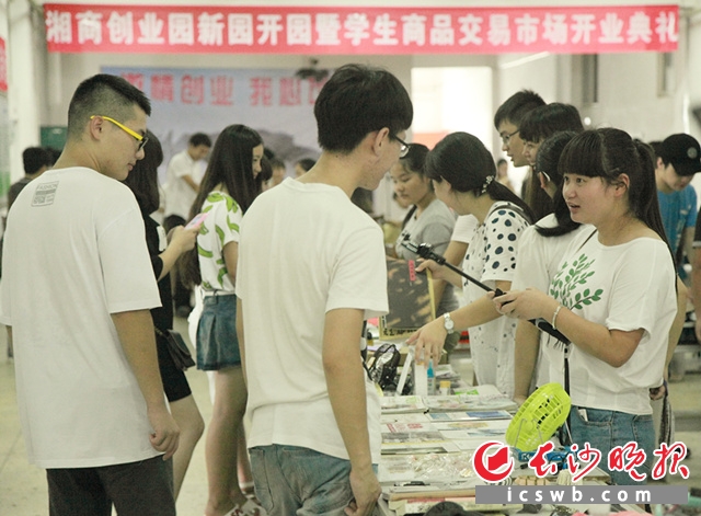 长沙晚报网6月25日讯(记者 徐媛 通讯员 廖佚) 学生搞创业,老师来“捧场”。在湖南商务职院刚刚开业的“湘商学生商品交易市场”里见到不少老师们的身影,他们通过购物表示对孩子们创业的支持。