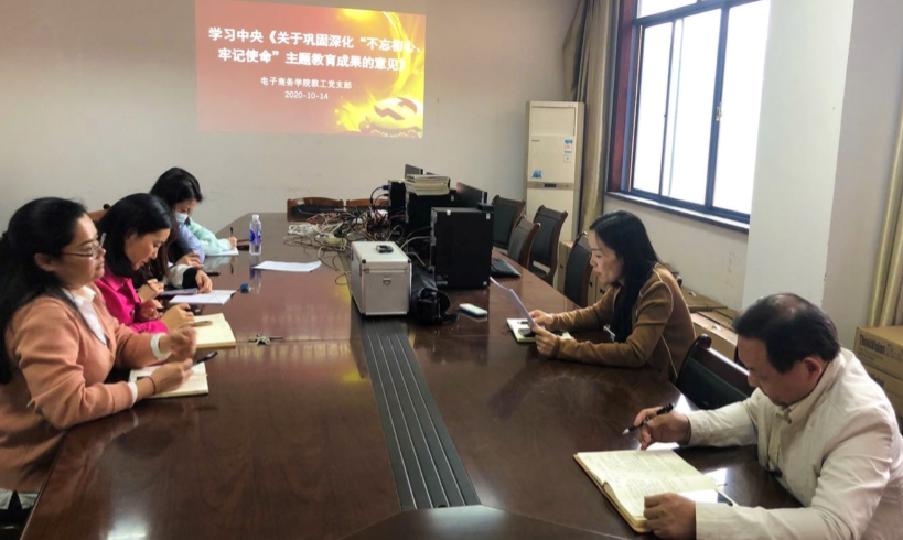 (通讯员 袁鑫)2020年10月14日中午13:00,电商学院教工党支部在办公楼404室开展集中学习研讨。电商学院教工党支部全体党员参加了本次学习研讨,由教工支部书记曾裕主持。