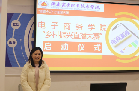 在第62个学雷锋纪念日来临之际,3月4日,湖南商务职业技术学院电商学院“乡村振兴直播大赛”正式启动,大赛为期一个月。支部领导下的团学分会志愿组织“青青火花”志愿服务团以“雷锋家乡学雷锋”为主题,发挥电子商务专业优势,用行动践行雷锋精神,充分发挥基层党组织的战斗堡垒作用和党员的先锋模范作用。