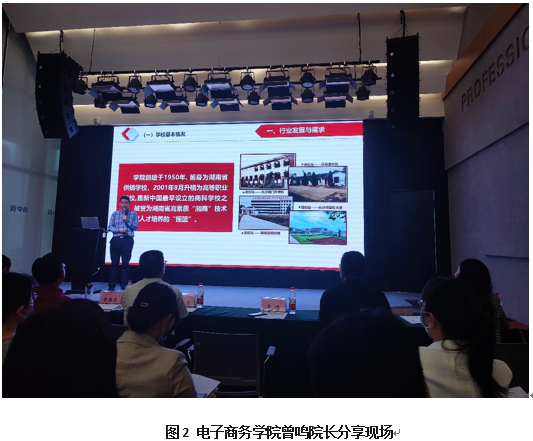 电子商务学院曾鸣院长进行了《农村电子商务专业:湖南的探索与实践》主题分享,他从农产品电子商务的行业发展切入,分析了农村电子商务产业发展前景广阔,对农村电商人才需求量大。我院农村电子商务、电子商务、移动商务、国际商务等各专业人才培养的侧重点不同,农村电子商务专业学生除了要学习网店运营与推广、客户服务与管理等电子商务通识课程外,还需要聚焦农产品供应链管理、农产品电商销售、农产品品牌建设等。