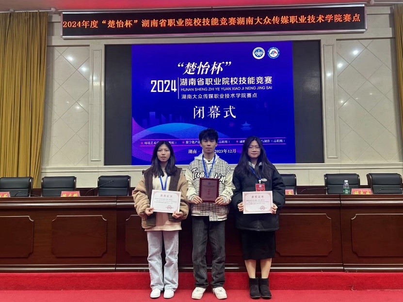 在12月2日结束的2024年度“楚怡杯”湖南省职业院校技能竞赛“融媒体内容策划与制作”赛项中,由农村电子商务专业陈天宇、曾裕老师共同指导的陈林、谢俊杰与舒珊参赛团队荣获湖南省二等奖。