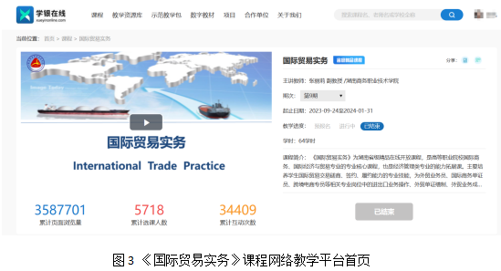 《国际贸易实务》课程是高职国际商务、国际经济与贸易专业的专业核心课,也是经济管理类专业的能力拓展课。主要培养学生国际贸易交易磋商、签约、履约能力的专业技能,为外贸业务员、跨境电商专员等相关专业岗位中的进出口业务操作、外贸单证缮制、外贸业务成本利润核算等能力的养成提供一定的知识储备的课程。教学团队共获得国家级、省级教学竞赛奖励多次,立项了多项省级课题,课程于2020年认定为湖南省精品在线开放课程。