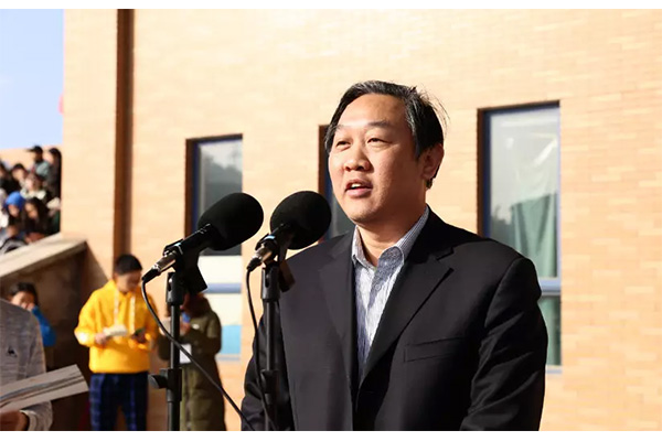 各代表队入场后,伴随着庄严而肃穆的国歌声,五星红旗在现场全体人员的注目下徐徐升起。当国旗在旗杆顶端迎风飘扬时,现场又响起激情昂扬的校歌《流金岁月》,校旗和会旗也在音乐中缓缓升起。