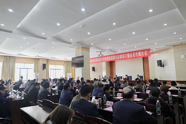 ▲4月16日,我校在办公楼115学术报告厅隆重召开第四届职工暨会员代表大会第八次会议。(图/李江冬 王晶)