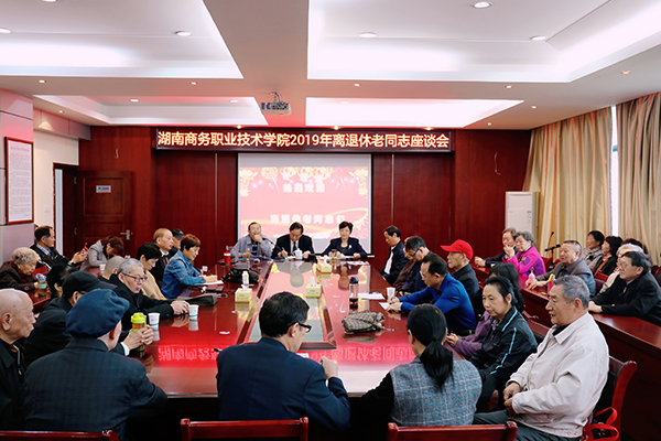 李定珍代表学校向离退休老同志表示诚挚的问候,并介绍了学校2018年所取得的成绩和2019年的工作打算。2018年成功立项湖南省卓越高等职业院校建设单位、湖南省文明校园、高校思想政治研究先进单位,现代商务、商贸流通、现代旅游管理3个专业群入围湖南省高职教育一流特色专业群建设项目,牵头成立有80多所高职院校加入的全国职业院校乡村振兴联盟、师生技能竞赛成绩创历史纪录、就业创业有新突破等等。2019年学校将在人才内培外引、教学质量提升、科研、招生就业、学校建设方面下功夫,为学校实现“三升”打下基础。