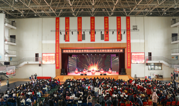 歌声袅袅辞旧岁,舞姿翩翩贺新春。1月1日下午,由学院工会主办,机关二分工会承办的湖南商务职业技术学院“欢庆百年风华,开启‘三升’征程”2022年元旦师生联欢文艺汇演在体育馆举行。学院党委书记周忠新、院长李定珍等学院相关领导出席汇演,师生欢聚一堂,共同喜迎新年。