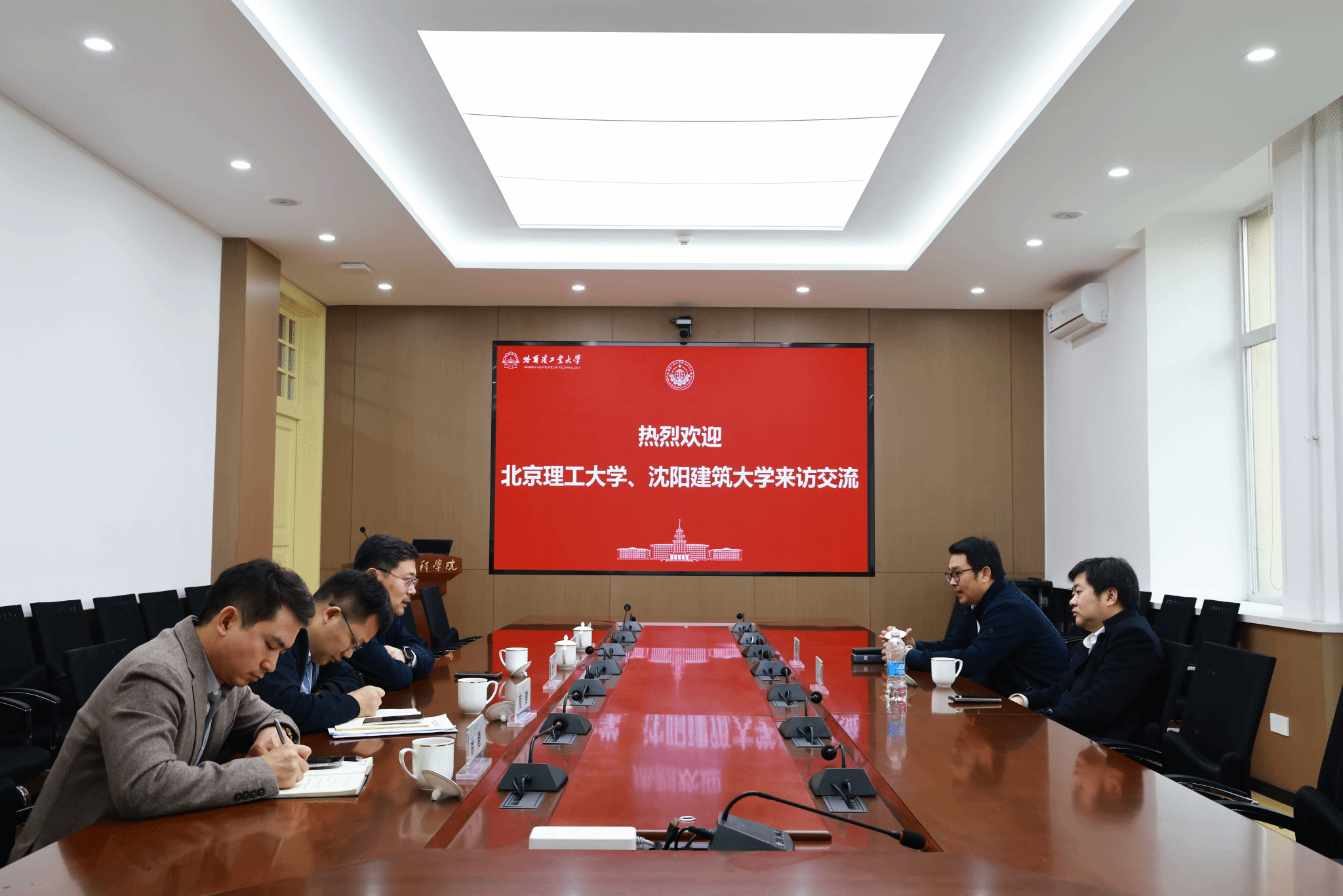 为深入推进一流专业与课程建设,强化科研基础研究能力和高层次人才培养,精准落实学校“十五五”规划发展要求,进一步加强学院间的交流协作。2026 年 3 月 25 日,沈阳建筑大学机械工程学院院长石怀涛,副院长白晓天等一行赴哈尔滨工业大学机电工程学院调研交流。哈尔滨工业大学机电工程学院院长岳洪浩,潘昀路、程健等党政班子成员、相关职能科室负责人参加座谈。其间,北京理工大学机械与车辆学院党委书记刘检华同时在哈工大调研交流,受邀参与本次座谈。