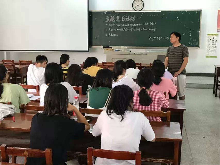 本次主题党日活动学工一支部就《习近平在全国教育大会上的讲话》讲解了习近平总书记提出的十个方面,如教师是人类灵魂的工程师,是人类文明的传承者;教师职责大,让广大教师有更高的声望等。
