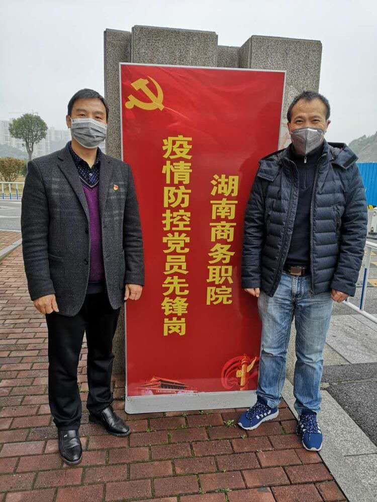 2月28日会计学院学工一党支部党员石辉金同志和朱泳霖同志在学校参加疫情防控工作。