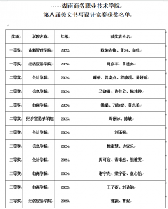 关于表彰湖南商务职业技术学院 第八届英文书写设计竞赛获奖者的通报
