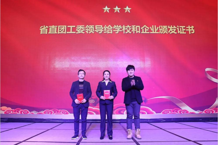共青团湖南省直团工委副书记张景贤代表共青团湖南省委向湖南沃成科技有限公司、湖南商务职业技术学院颁发爱心证书。