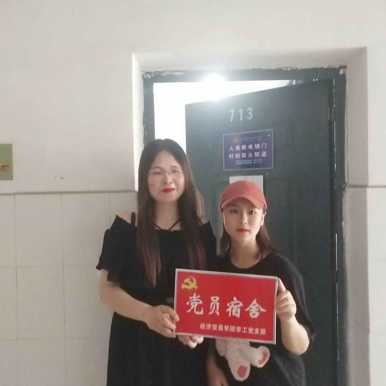 经贸学院党小组组长孔霞同志为党员宿舍挂牌