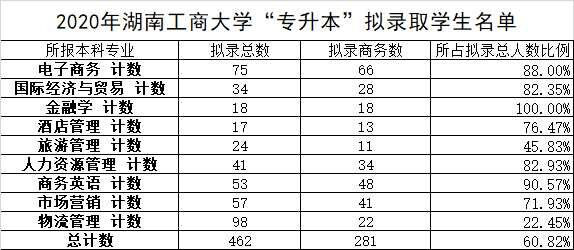 (通讯员 方嘉成)2020年湖南工商大学专升本录取工作顺利结束,经济贸易学院拟录取人数为97人,分别为市场营销41人、人力资源管理34人、物流管理22人。(其中,市场营销专业对口市场营销专业、商务管理专业和连锁经营与管理专业对口人力资源管理专业、物流管理专业对口物流管理专业。)