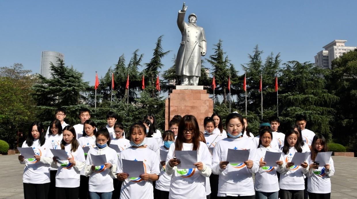 沐浴着清晨的阳光,党员同志们有序前往中国共产党长沙历史馆。在毛泽东塑像广场,第五党小组张志文同志带领全体党员重温入党誓词。随后,同志们声情并茂地齐诵《中华颂》,慷慨激昂的声音响彻纪念馆广场,引来不少游客的围观赞叹。