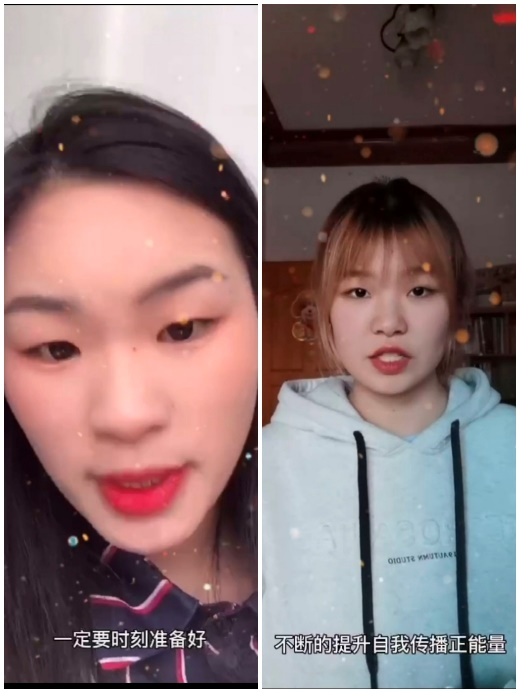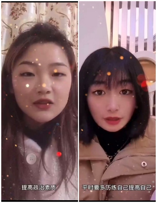 第一个出现在视频的是19商管2班的邓杰。她提醒2020级同学:“一定要时刻准备好,从现在开始把握好自己的时间,为自己未来做筹划。”19市营2班颜娅琳情深意切的说:“我跟随着党的脚步不断学习进取,提高了自身的政治素养,希望各位小伙伴们也能积极向上,积极向党靠拢,不断的提升自我,传播正能量。”