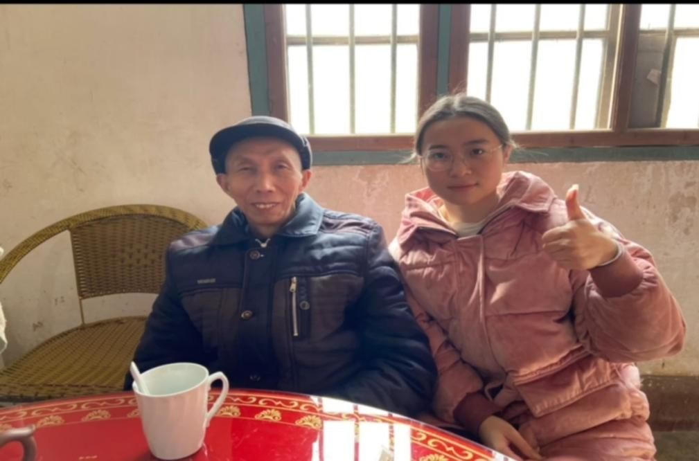 ▲徐思宇同学与徐成明爷爷聊天