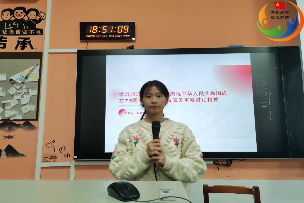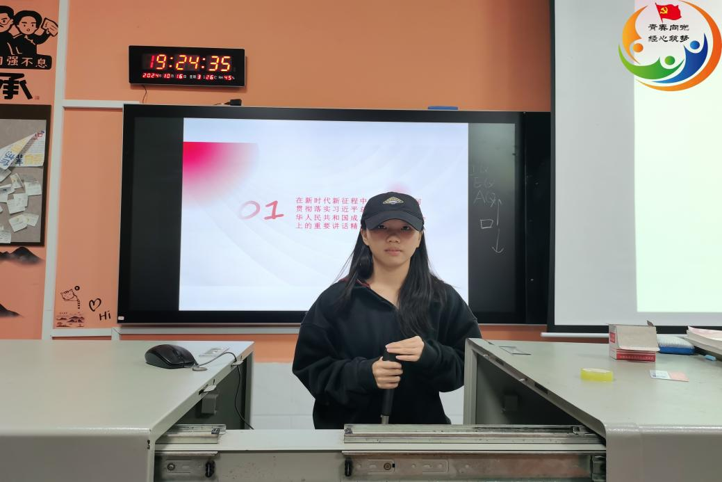 (通讯员 李思琪)为了深入学习贯彻重要讲话精神,培养新时代有理想、有担当的青年学子,2024年10月16日晚7时,经济贸易学院学工党支部组织开展“学重要讲话精神,谱新时代绚丽华章”主题党日活动。此次活动由23级物流管理2班彭淑雅主持,经济贸易学院学工党支部全体党员、入党积极分子参加此次活动。