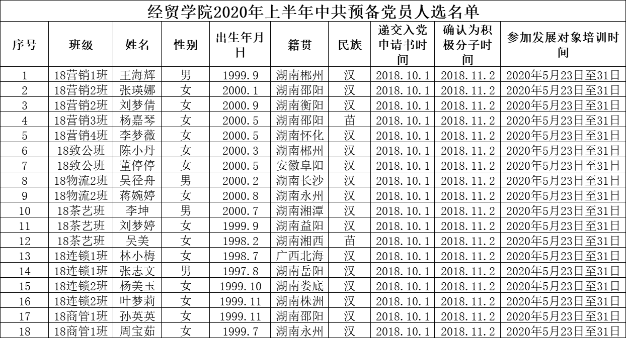 经本人申请、党校培训、党支部培养教育和考察,拟将王海辉等18名同志接收为中共预备党员,并于近期召开支部大会讨论。为发扬民主,广泛听取群众…【查看全文】