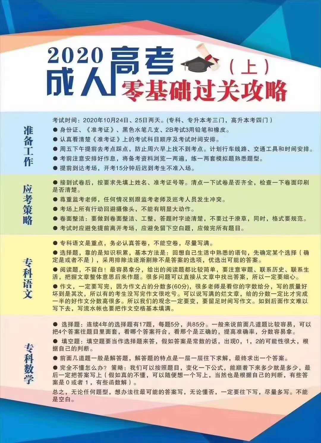 2020年成人高考零基础过关攻略
