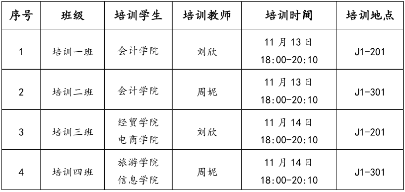 具体课程培训、时间、地点及培训班级安排如下: