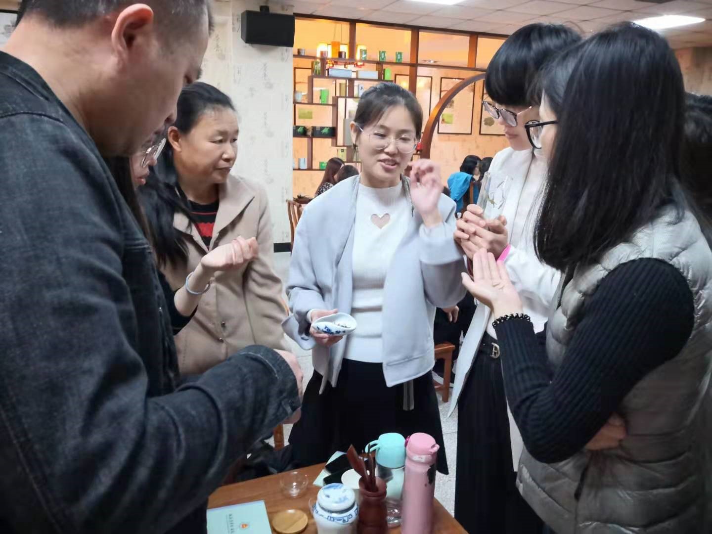 图六:培训老师在讲解各种茶叶的特征