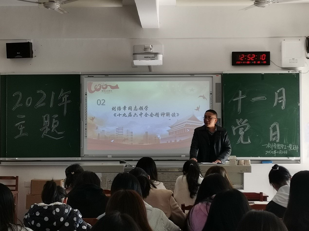 活动伊始,支部书记谭灿娇同志领学《中国共产党第十九届中央委员会第六次会体会议公报》,她强调,我们要积极响应党中央号召,要全面贯彻以习近平新时代中国特色社会主义思想,大力弘扬建党精神,必须永远保持同人民群众的血肉联系,践行以人民为中心的发展思想。