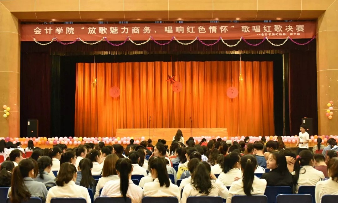 为深入学习宣传党的十九大精神,引导广大青年朋友认真学习和理解习近平总书记对“中国梦”的阐释。2018年4月12日晚7点,我院于体育馆举办“放歌魅力商务,唱响红色情怀”红歌大赛,此次比赛由会计学院团学分会主办,纪检部与网文部承办。