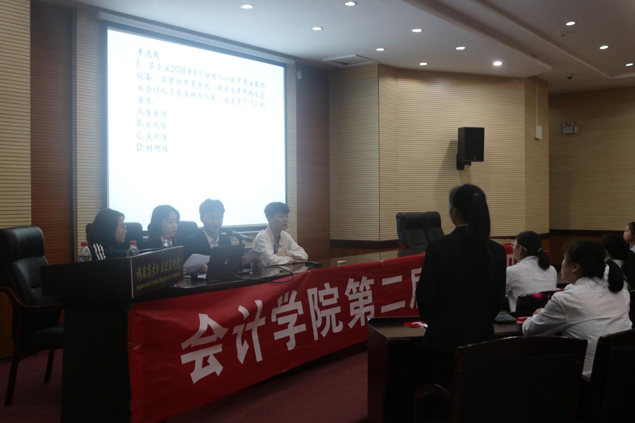 为丰富商务学院学生校园文化生活,营造良好的学习气氛,提高学生对相关专业技能的学习与运用能力,2019年4月22日晚上7:00,由会计学院团学分会主办,会计学院学习部、宿管部承办的“财务知识竞赛”决赛于在我院办公楼一楼学术报告厅隆重举行。