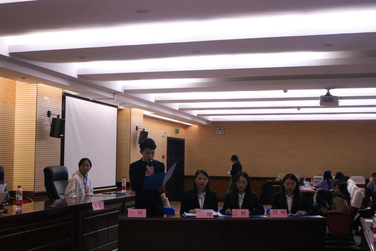 415日晚1900,辩论赛在主持人的报幕中来开了序幕。现场群英会聚,各显身手。各辩手同学摩拳擦掌,展现着自己的辩论才能。本次比赛有三组辩论赛,六支队伍,他们将给我们带来一场辩论盛会。