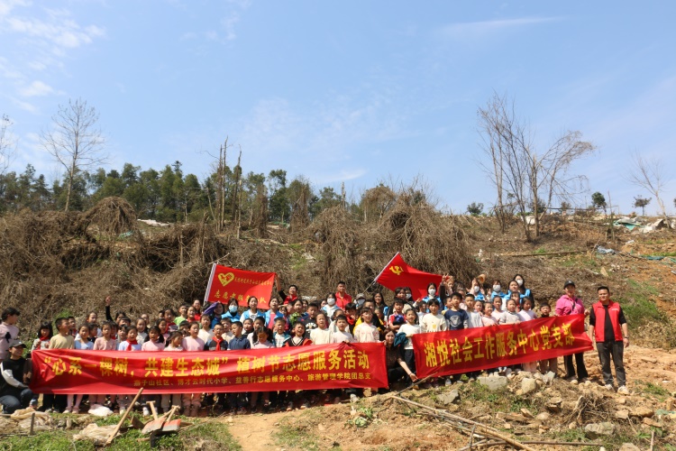 3月12日,我国一年一度的植树节。为进一步美化社区环境,倡导环保精神,共建绿色环保社区,天顶街道燕子山社区联合博才云时代小学、益善行志愿服务中心、湘悦社会工作服务中心党支部、旅游管理学院团总支于3月12日上午在辖区内开展以“心系一棵树,共建生态城”为主题的植树节志愿服务活动。