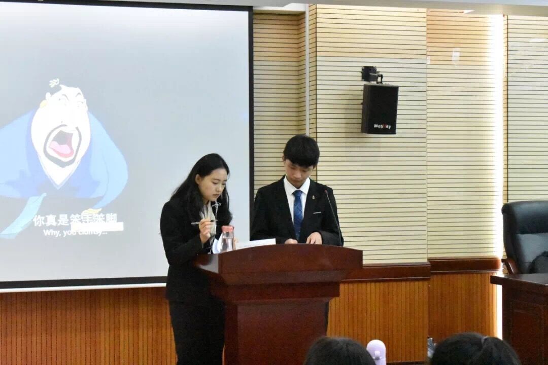 此次配音比赛的主持人 17商英2班陈雅 17商英1班虞昌