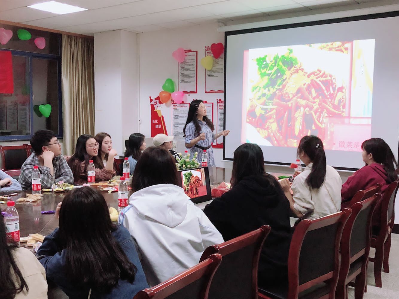 为了让同学们更加深刻的了解到中华饮食文化的魅力,由旅游管理学院心理部以及实践部共同举办以旅游美食与传统文化为主题的文化沙龙于2019.4.21在办公楼201召开。本次文化沙龙会议邀请了旅游管理学院许若晨老师作为主讲人。 许若晨老师首先向同学们介绍了八大菜系的来源,并详细地为同学们讲解了八大菜系中较为经典的菜品和用料,现场氛围十分愉悦。