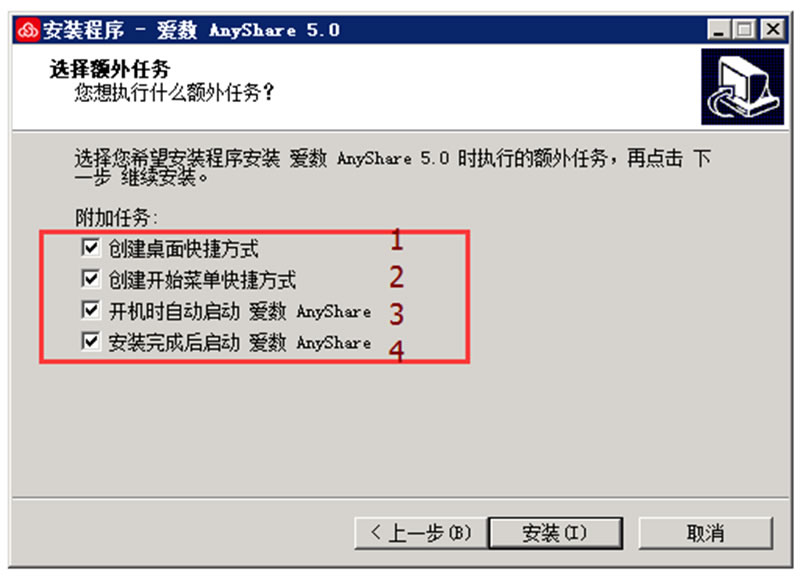 (4)在“选择额外任务”窗口中,把4个选项都给打上“√”,单击“安装”,等待程序安装完成(运行速度比较慢的计算机可能需要1-3分钟才能安装完毕)