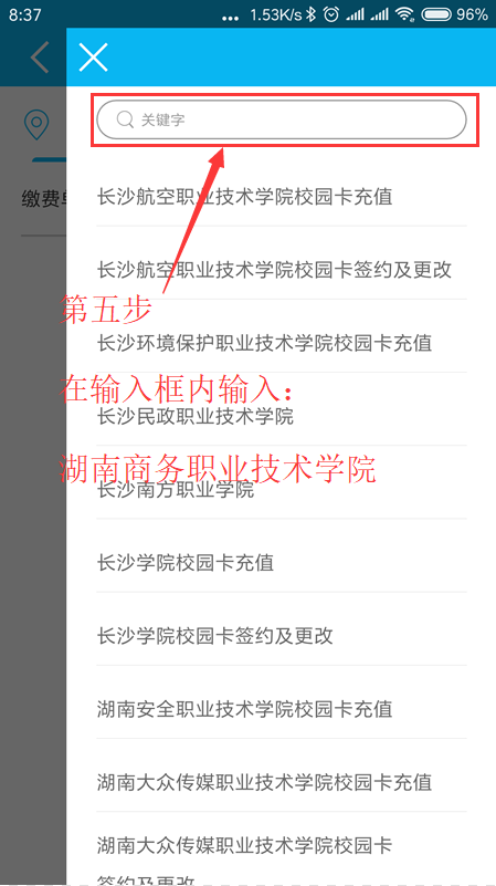 第五步,在搜索框中输入“湖南商务职业技术学院”