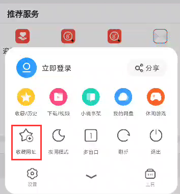 第二:在手机浏览器中(以UC浏览器为例)收藏移动端信息门户,以便于今后使用。如下图所示: