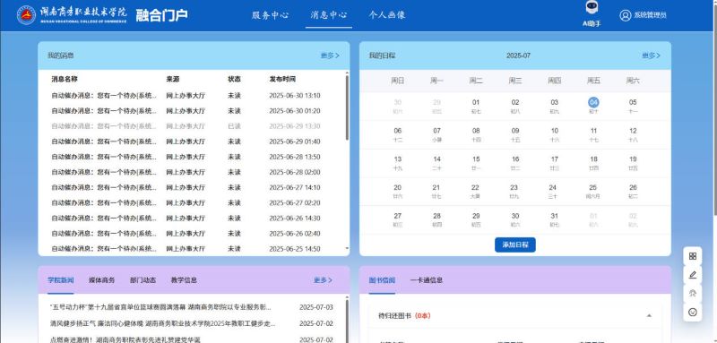 此时退出同一身份认证平台,再次进入融合门户即可直接进入下图中展示的门户主页面