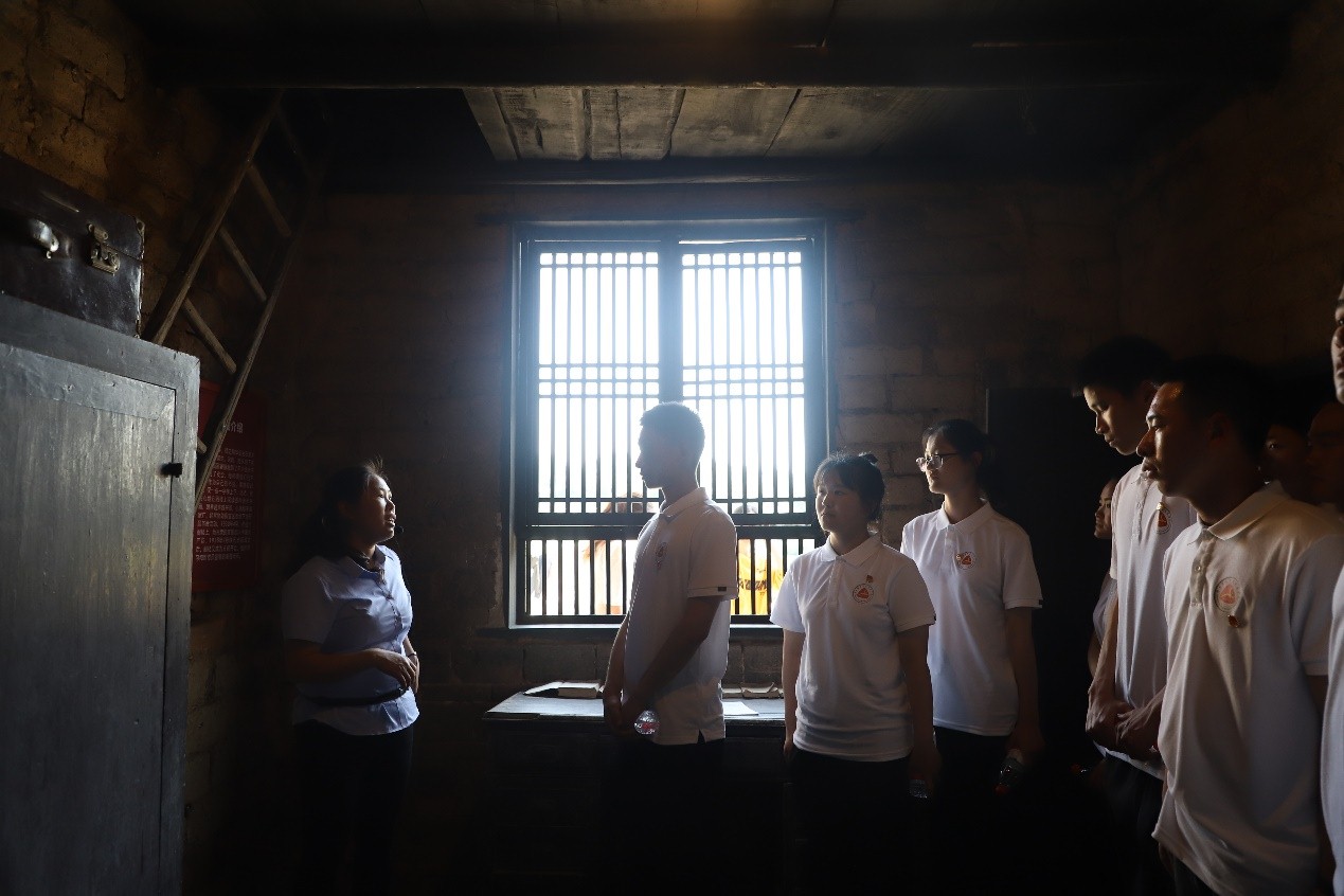 一行人首先来到了周之翰故居,周之翰烈士把国家利益放在个人利益之上,为革命流尽最后一滴血,奋不顾身、不畏生死的精神值得后人学习。他曾在狱中自设灵台,撰写自挽联:“造成伯有以相惊,方为雄鬼;做到世人皆欲杀,才算男儿”。青年学生聆听着周之翰侄孙媳妇的讲解,感叹着正是无数革命先烈用青春和生命换来了现在的和平与安定。
