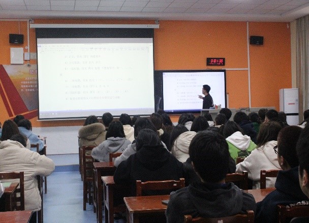 首先,电商学院第五届团学分会第二课堂中心部长蒋德斌向大家介绍及讲解了活动文件的策划、通知、总结及表彰的内容格式,要求规范及注意事项。接着,纪检部干事徐涛向大家讲解电商学院团学分会干部考核细则及干部考核制度,让大家明确作为学生干部的责任与要求。最后,电商学院团学分会副书记、组织部部长谭淳心对会议进行总结并提出了要求,身为一名学生干部应该做到学会平衡学习与工作之间的关系,作为学生干部应该在同学中起到带头作用,也应具备服务奉献意识和工作责任意识。同时也指出了各部门上学期存在的问题及应提高工作效率的相关建议。