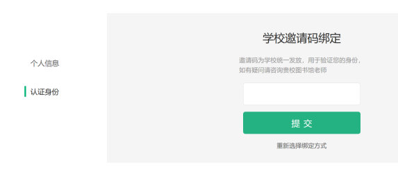 2)点击右上角个人账号的“设置”按钮,进入之后,选择身份认证“资料库”,输入邀请码,绑定完成。