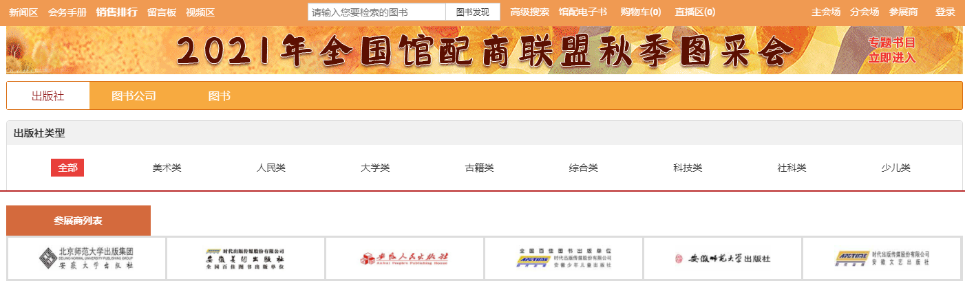 2.1、出版社分会场:按出版社综合分类和出版公司名称展示各出版社图书,点击分类首先展示该类别下的出版社名单,点击出版社名称即可进入选书界面。