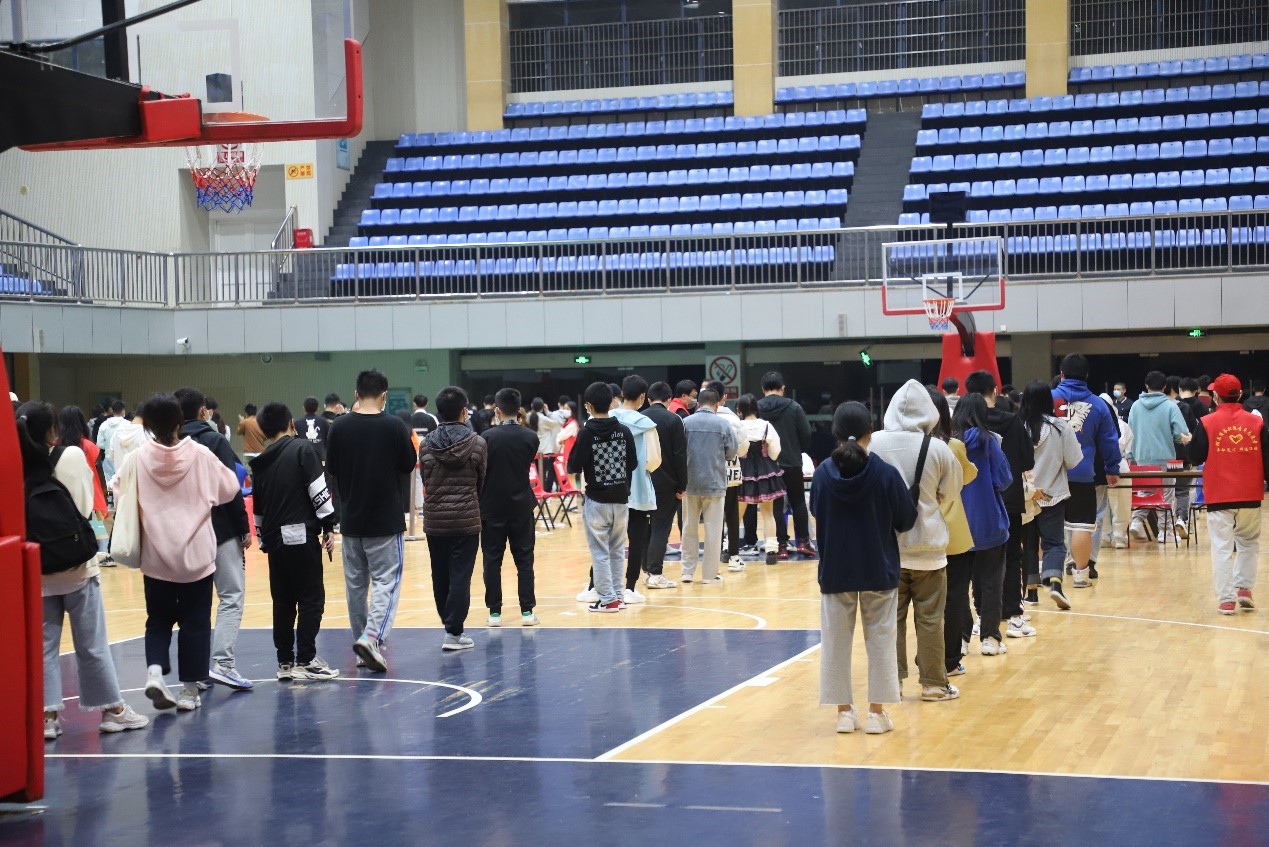 现场人员繁多,白衣天使们耐心仔细地为同学们做核酸检测,志愿者和安保人员认真负责地管理现场秩序,同学们也积极配合工作人员,使得整个现场井然有序。
