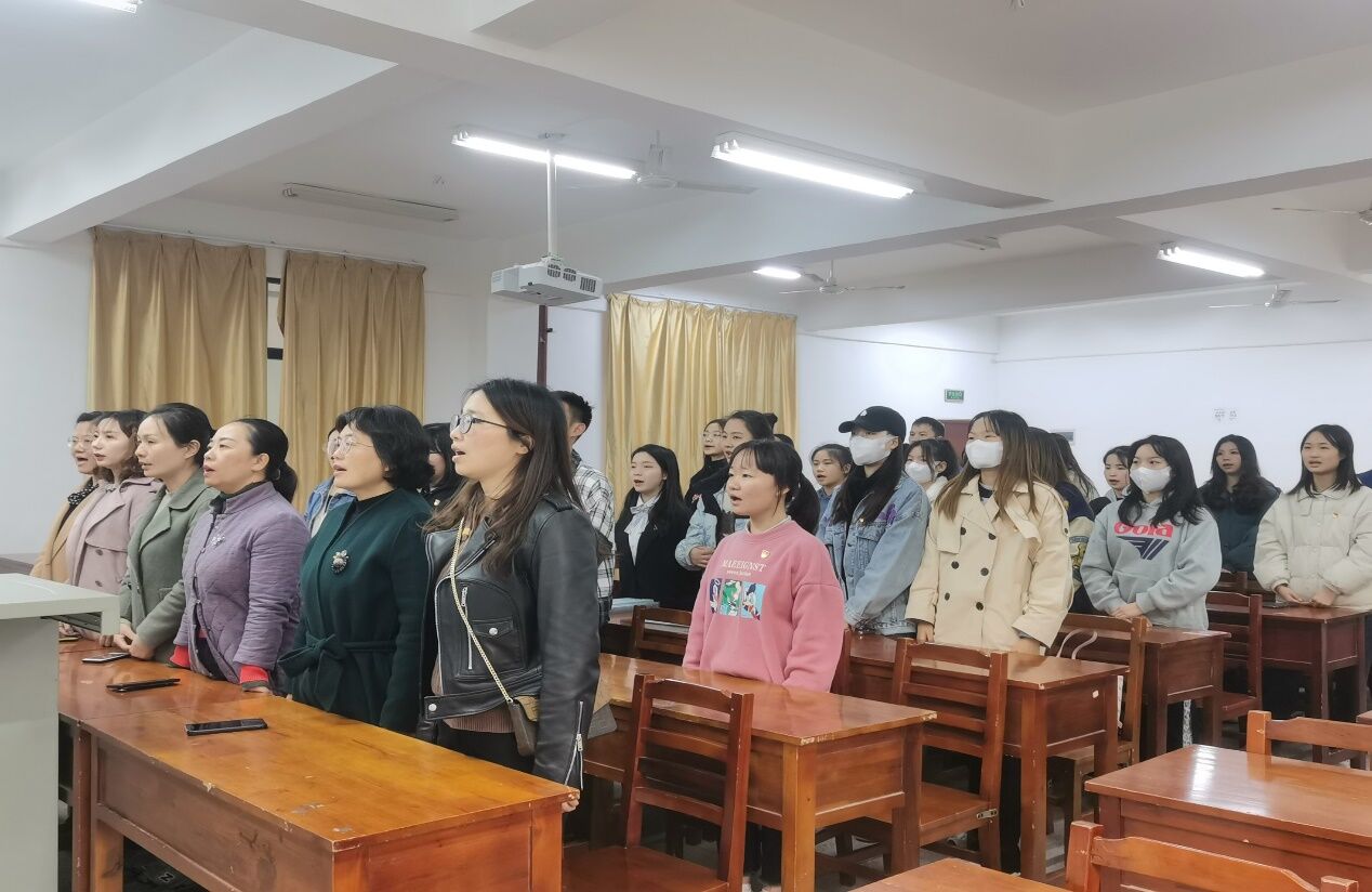 谭梦舟向大会报告参加会议的党员情况,在庄严的国歌声和入党誓词中,本次大会正式开始。